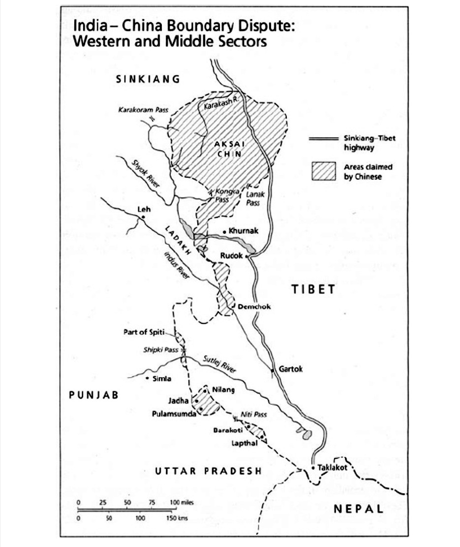 जब दलाई लामा का तिब्बत से भारत पलायन हुआ था उस समय भारत-चीन संबंध वाकई बहुत खराब थे. सन् 1957 की गर्मियों में लद्दाख के लामा और सांसद कुशक बाकुला ने तिब्बत का दौरा किया था और सिक्यांग की तरफ व्यापक सड़क निर्माण की गतिविधियों का संकेत पाया था. फिर जुलाई 1958 में पीकींग से प्रकाशित होने वाली चीन की एक सरकारी पत्रिका चाइला पिक्टोरल ने एक नक्शा प्रकाशित किया जिसमें नेफा और लद्दाख के एक बड़े हिस्से को चीन का हिस्सा बताया गया. 21 अगस्त को भारतीय विदेश कार्यालय द्वारा चीनी दूतावास के एक काउंसलर को बुलाया गया और उप-सचिव स्तर के एक अधिकारी ने उसे नक्शे के बारे में एक विरोध पत्र सौंपा. वह पत्राचार अधिक महत्वपूर्ण हो गया क्योंकि फिर पत्रचारों की श्रृंखला उच्चस्तर पर शुरू हो गई और दाव ऊंचा होता गया.3 18 अक्टूबर को विदेश सचिव ने चीनी राजदूत को एक विरोध पत्र लिखा जिसमें सिक्यांग-तिब्बत हाईवे के एक खंड पर आपत्ति व्यक्त की गई जो ’जम्मू-कश्मीर प्रांत के लद्दाख क्षेत्र के पूर्वी हिस्से से होकर बनाई जा रही थी और जो भारत का हिस्सा था.’4 और फिर सन् 1958 के आखिरी तक दोनों देशों के प्रधानमंत्री जवाहरलाल नेहरू और चाउ एन लाई एक दूसरे को इस बारे में पत्र लिख रहे थे. ये पत्राचार अगले कुछ सालों तक चला. शुरू में यह पत्र दुख और आश्चर्य के साथ शुरू हुआ था जो बाद में गुस्से और नाराजगी में तब्दील होता गया.